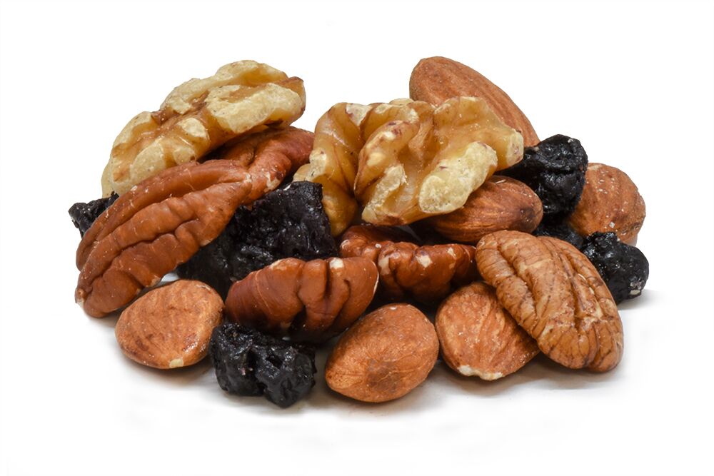 ALMONDS, WALNUTS, PECANS, DRIED BLUEBERRIES.