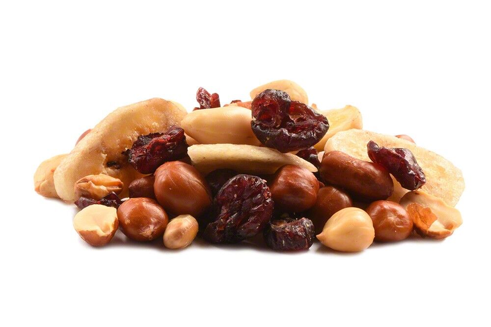 Peanuts, Raisins Seedless, Cranberry (Sugar, Citric Acid And Sunflower Oil), Sunflower, Soybean (Soybean Oil), Banana Chips (Sugar or Honey, Coconut Oil), Sunflower Oil, Salt. Banana Chips Product of Philippines. Raisins