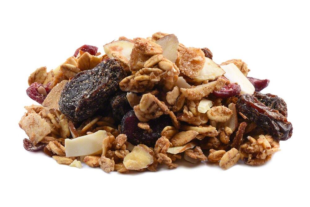 Oats, Dark Brown Sugar, Sliced Almonds, Coconut, Dried Cherries (Dried Cherries, Sugar, Sunflower Oil), Vanilla Flavor (Propylene Glycol, Water, N&A Flavor, Caramel Color, Glycerine), Cinnamon, Salt. Cranberry (Cranberries, Sugar, Citric Acid, Sunflower Oil).