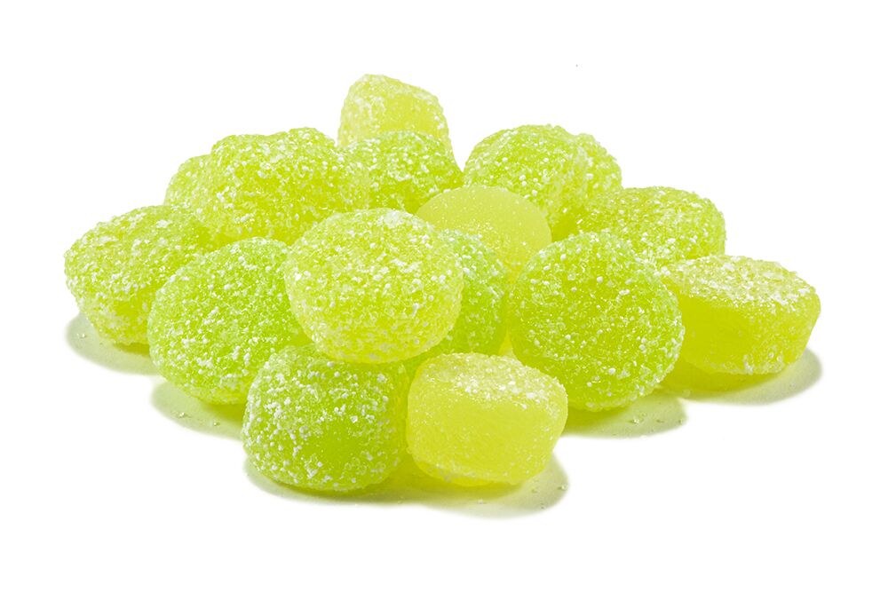 Glucose syrup (wheat & corn), sugar, modified starch (wheat, corn, potato), acidifiers (malic, citric, lactic acid, sodium malate), colorings (blue #1- artificial, Turmeric, apple-natural source) glazing agent (carnauba wax).