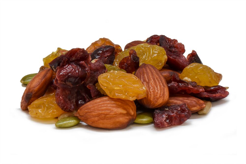 DRIED SWEETENED CRANBERRIES, ROASTED SUNFLOWER SEEDS, ROASTED ALMONDS, ROASTED PEPITAS, GOLDEN RAISINS.